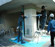 ポリエステル製のベルトやシートを無溶剤接着材で、コンクリート構造物の柱や壁、あるいは木造建築の接合部や軸組などに貼り付けて補強する耐震補強工法です。