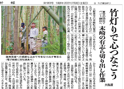◆7月中旬:大船渡市碁石地区の放置竹林から大震災被災者が竹100本を切り出す。