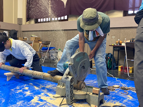 「関東大震災100年」の節目に、大船渡市の大震災被災者が竹100本を切り出して東京都慰霊堂に搬入。首都圏の障がい者や中高生、大学生らがワークショップで竹灯りを制作し、第11回首都防災ウィークを照明しました。
